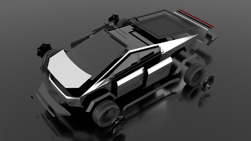 This is a highly-detailed (and high-poly) 3d model of a Tesla Cybertruck. It was built in Maya, and the photo-realistic rendering you see in the preview images were rendered directly in Maya using the Arnold Render render engine.