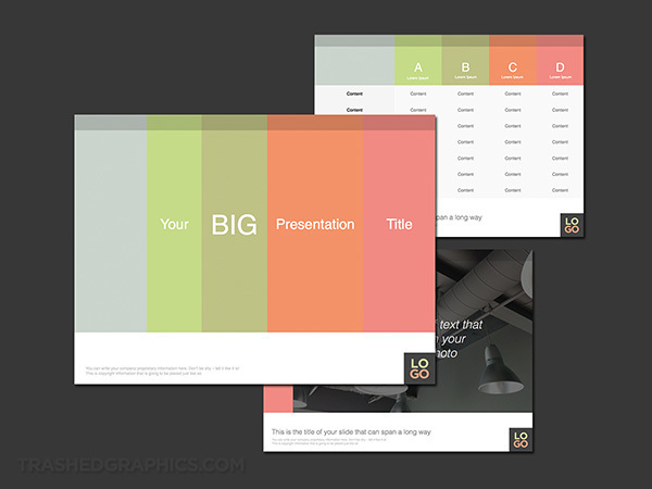 Fully editable 3-page PowerPoint presentation template with a table-based flat design theme. Includes a cover slide, text slide, and table slide.